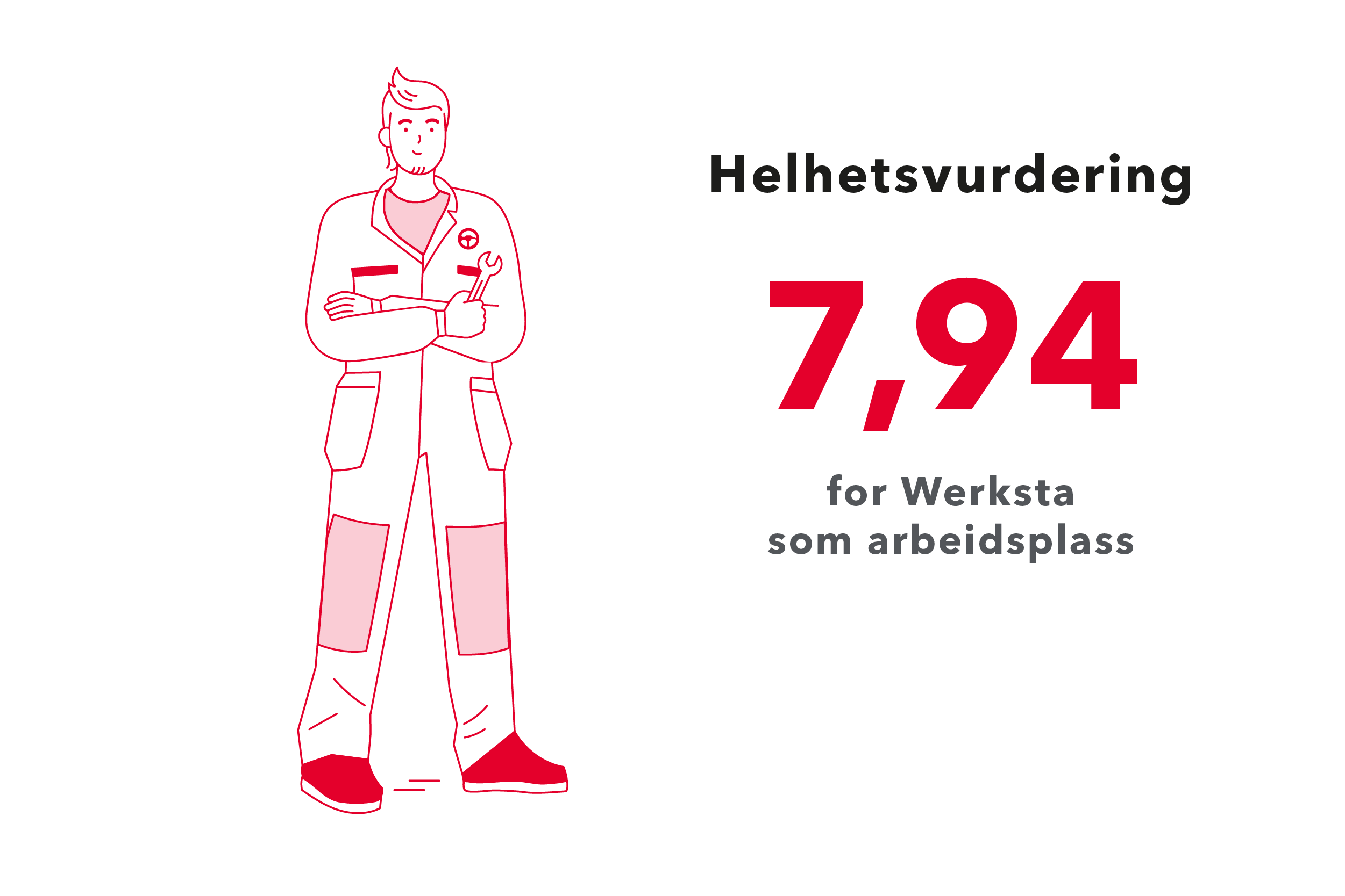 Vår suksess nå og i fremtiden er basert på personalet vårt. Når våre ansatte har det bra, får våre kunder også best mulig service. Vi måler våre ansattes tilfredshet i årlige medarbeiderundersøkelser. I 2020 var personalets totale rangering for Werksta 7,94 (på en skala fra 0-10).
